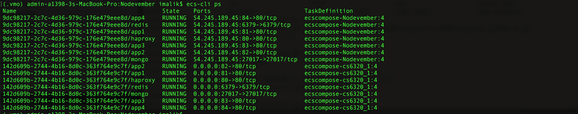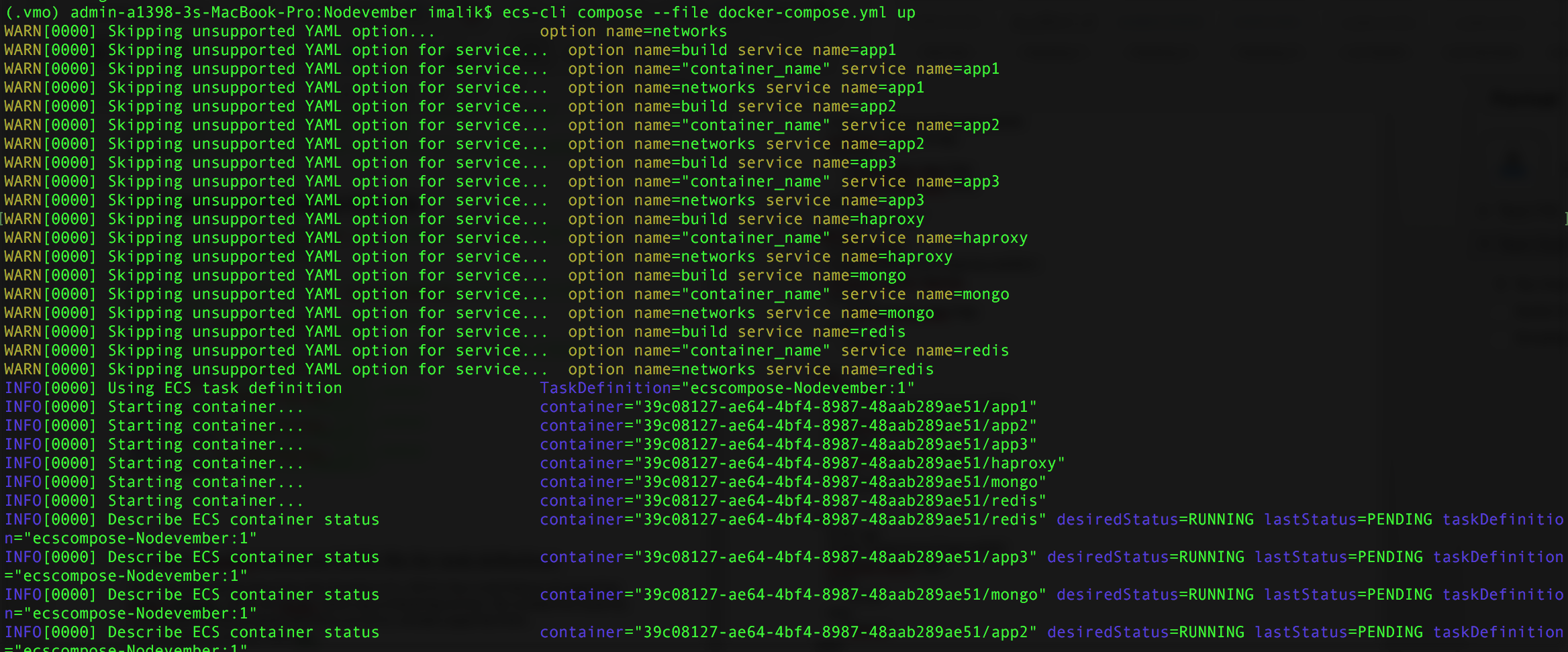Declaring tasks can be done from the Console or CLI. ECS CLI has a neat feature of supporting docker-compose , which are docker native way of declaring services. We avoided the hassle by reusing same compose based definitions as ECS CLI already supported them. The compose for our app looks like: