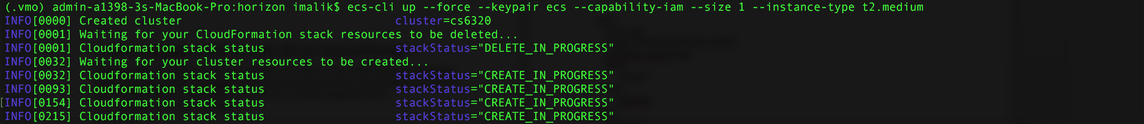 INFO[0000] Saved ECS CLI configuration for cluster (cs6320)