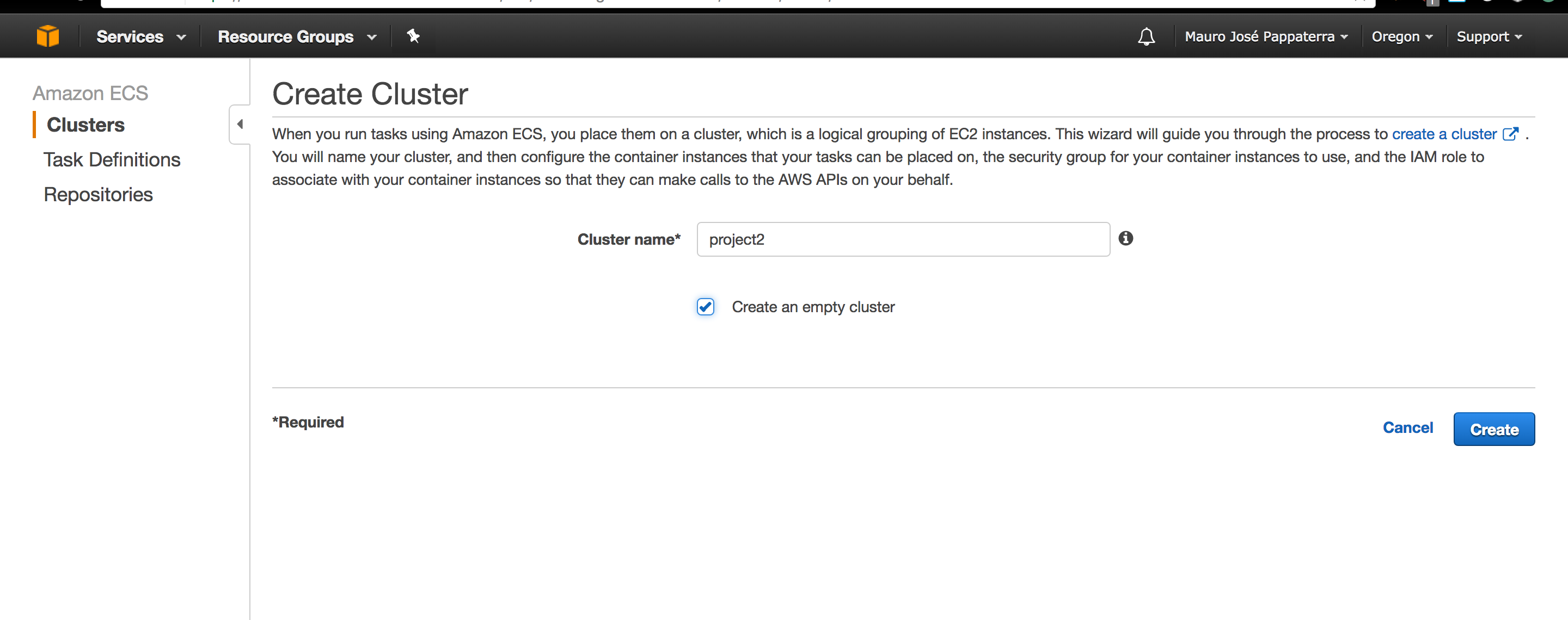 First step in deploying any web application to create an ECS cluster from aws console. This is a fairly simple step as show in picture below: