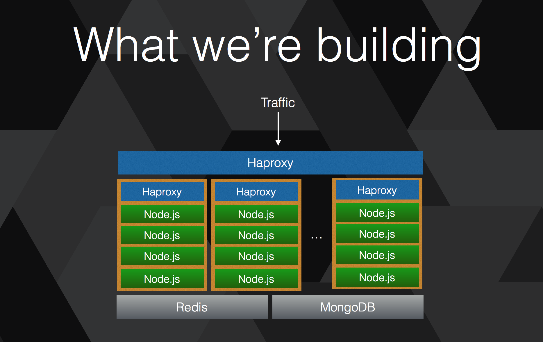 In this demo, we will show you how to deploy a scalable,load-balanced and high available simple nodejs app. The demo will have multiple instances of nodejs app each running inside a container and load-balanced through haproxy. The basic architecture looks like following: